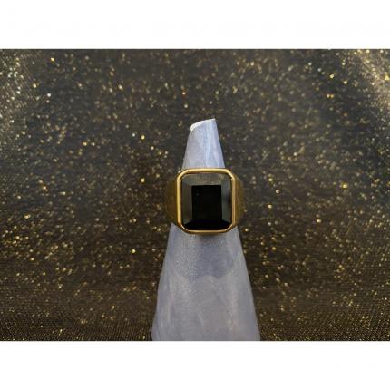 Chevalière doré avec pierre noire.
